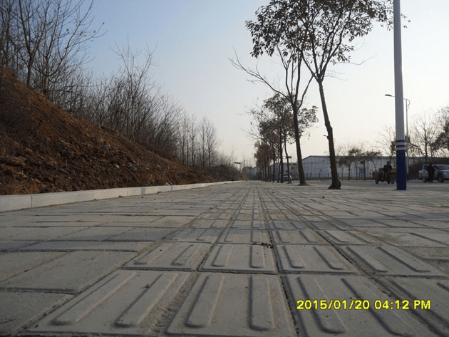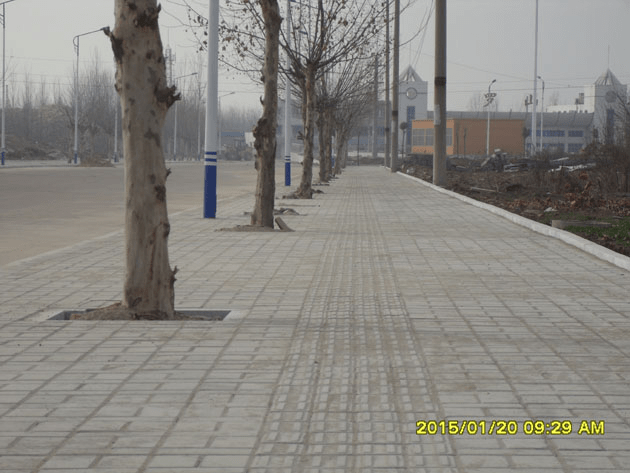 我公司組織施工的“羅山縣產(chǎn)業(yè)集聚區(qū)部分主干道人行道道路硬化一標段”經(jīng)過90天的緊張施工,現(xiàn)已全面完工。該標段包括羅山縣產(chǎn)業(yè)集聚區(qū)站前西道(局部)和工業(yè)大道(局部)人行道建設(shè)工程。其中站前西道人行道建設(shè)工程施工長度為602.4M;工業(yè)大道人行道建設(shè)工程施工長度為630.5M,兩路段工程寬度皆為5M,結(jié)構(gòu)層從下至 上依次為:8CM碎石基層、10CM砼墊層、3CM水泥砂漿結(jié)合層、6CM人行道磚。該工程正在準備驗收。