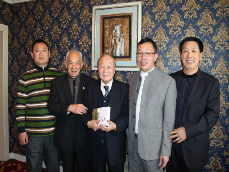 92歲高齡的世界孔子聯(lián)誼總會(huì)會(huì)長(zhǎng)孔德墉(左三)與出席曲阜祭孔大會(huì)的信陽(yáng)籍代表合影留念